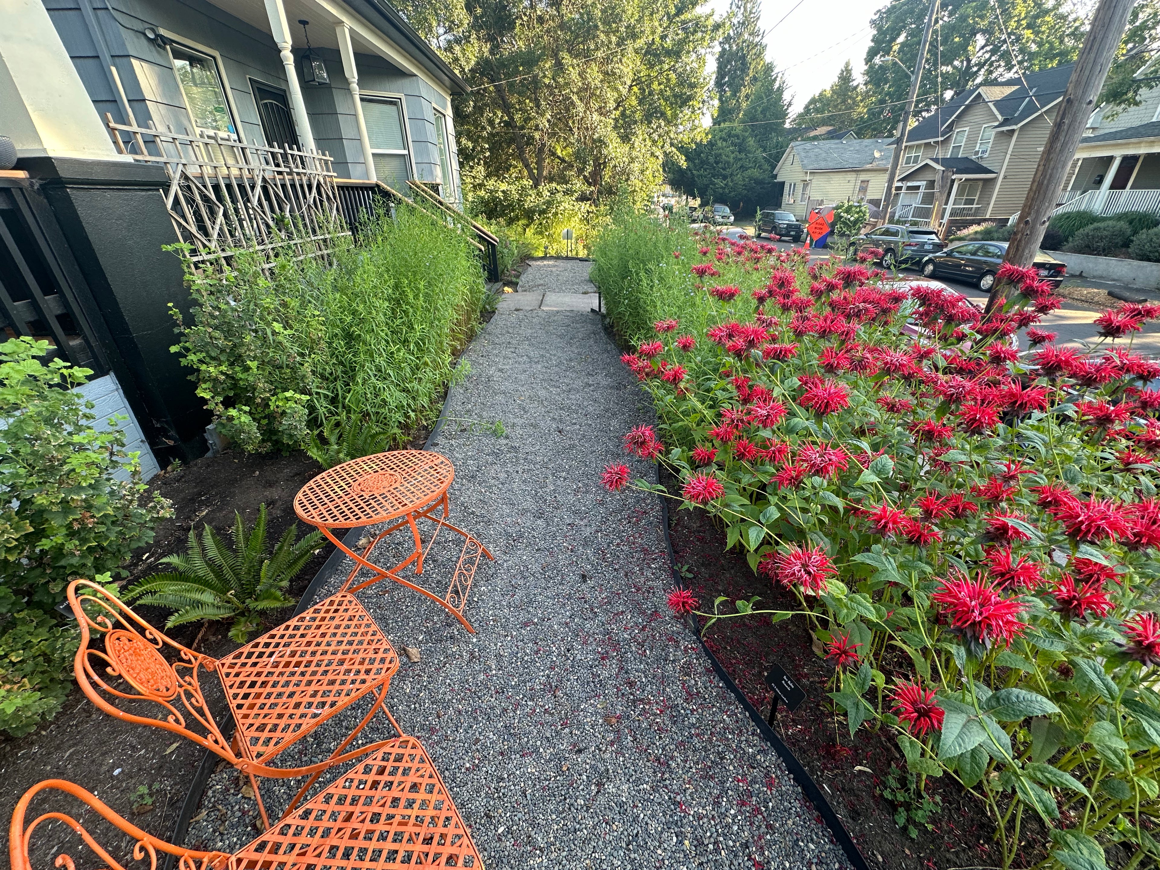 "A year ago I was looking for help redesigning my garden to make it more environmentally friendly and meet the requirements of Audubon's Backyard Habitat Certification program. From the start it's been a pleasure working with PDX Urban Gardens. They provided creative ideas for the use of my garden space including replacing my lawn with a wide variety of native plants, a food forest of fruits and berries, bird baths and a drip irrigation system. I was given a clear presentation of options and prices to meet a cost conscious budget. All the plants, soil and ground cover they provided are high quality. My garden is thriving and home to a growing number of bees and a variety of beautiful birds. I addition, I have many plants to use for herbal remedies and teas and for cooking. PDX are very professional and considerate to work with. They're great about communicating plans for maintenance, scheduling visits and giving feedback on progress. I'm delighted with the progress we've made and I can unreservedly recommend PDX Urban Gardens as a great business to work with!"