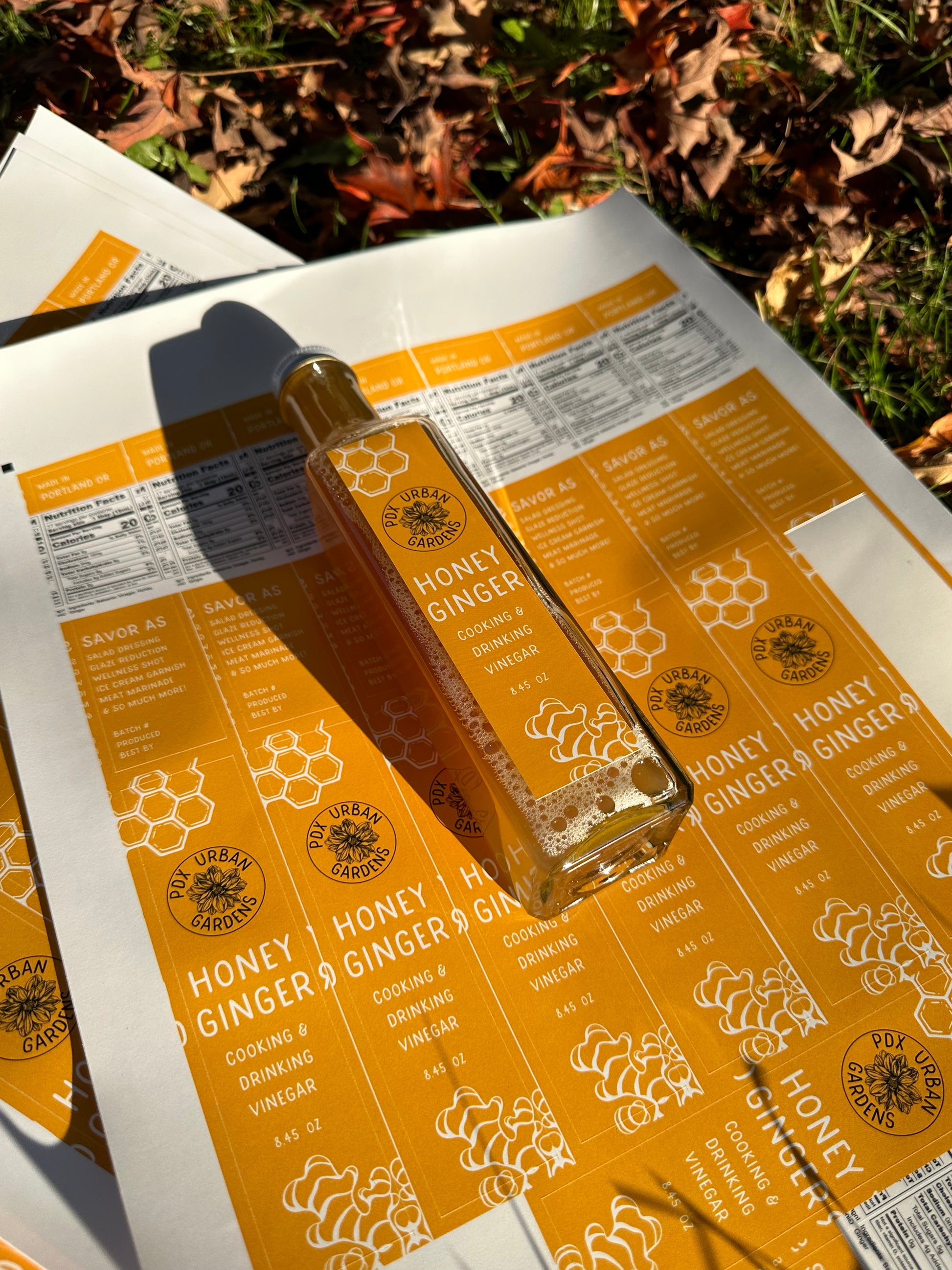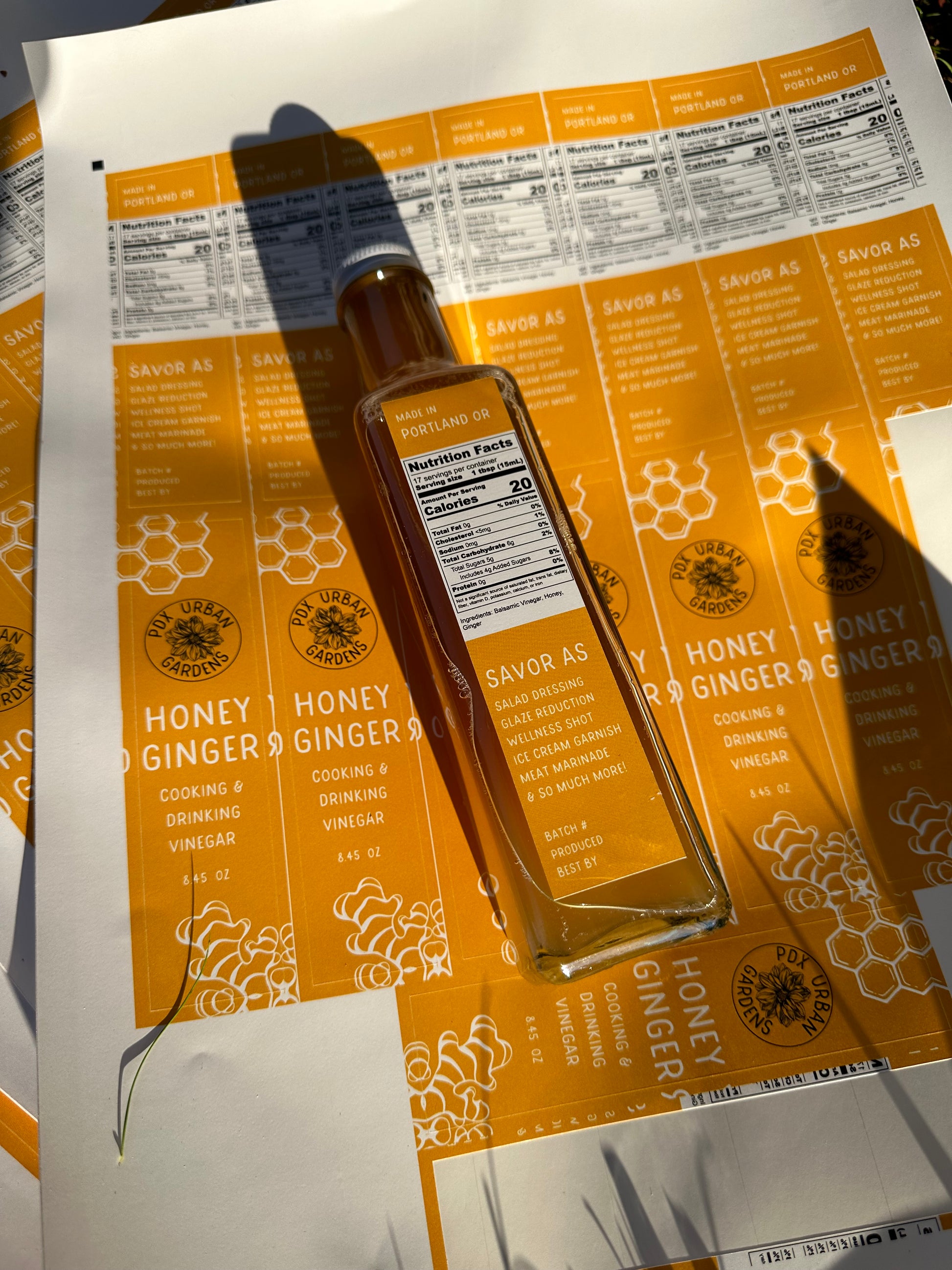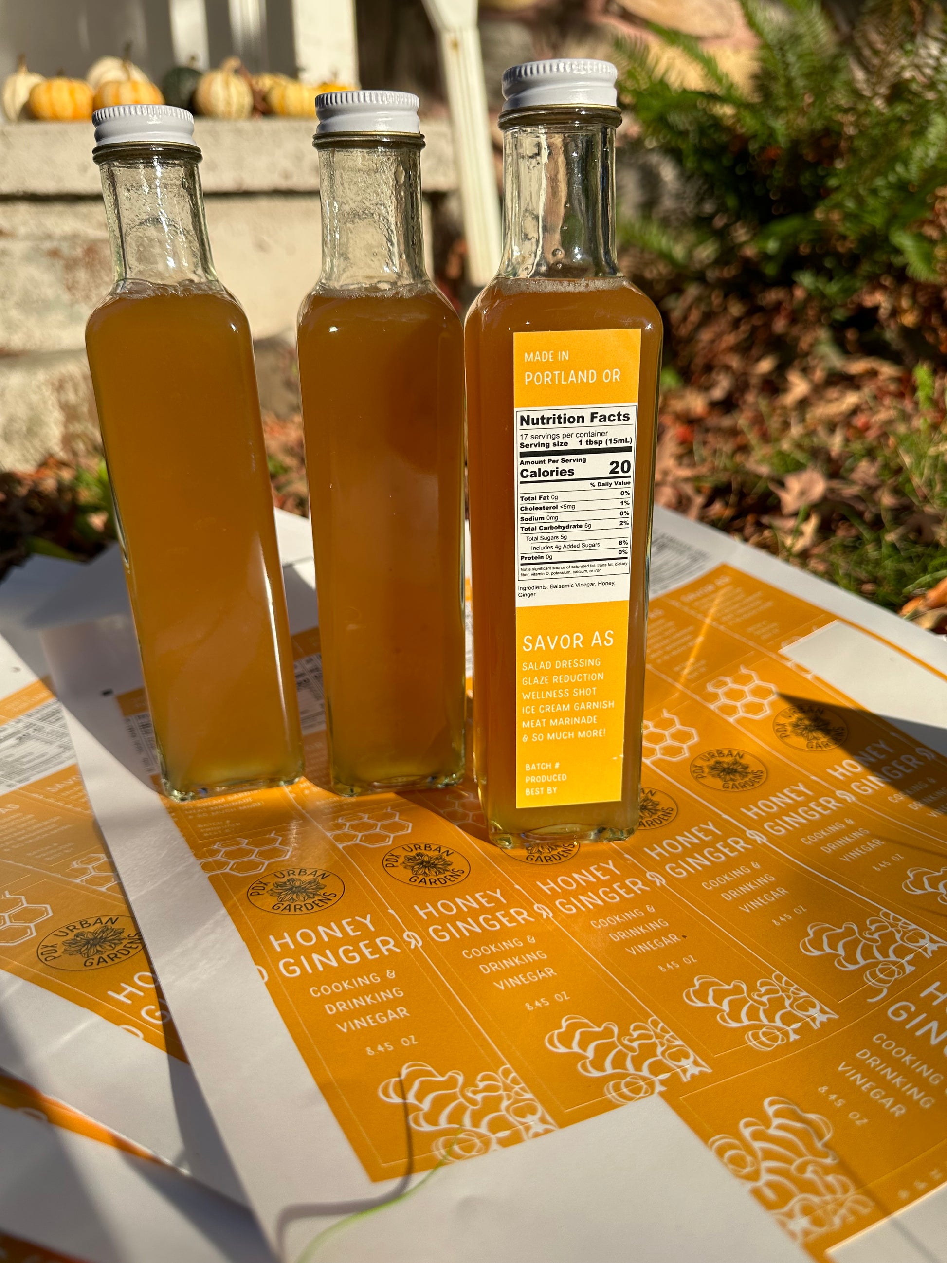 made by infusing fresh ginger, local honey, and white balsamic vinegar